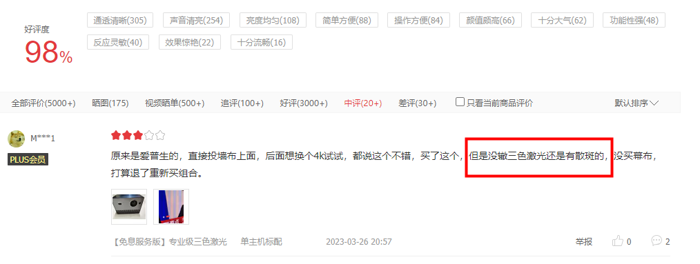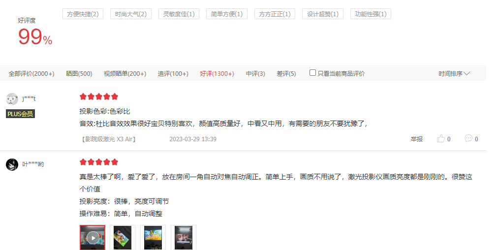 以上就是2023年4K投影仪推荐的全部内容,从上面3款投影仪好评率来看,当贝X3 Pro的好评率是最高的达到99%,大家可以根据自己的需求去进行选择!