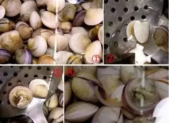 挑选蛤蜊:选蛤可是一门学问,肉嫩无沙的好蛤吃起来就是带劲!相反,吃到坏蛤、有沙的蛤绝对坏心情啊~一般蛤都是放在水里养,透过水可以看到蛤蜊的外形(如上图):①要选贝壳有光泽的。不同品种的颜色不同,白蛤较白,花蛤较黑。②不要以为选开口的蛤蜊就是活的,大错特错!在水里开口的蛤蜊,可能已经死了很久了!③闭着盒的一定是活的?也不一定。不怕腥,可以拿起来2个对敲一下,空的很容易分辨出来。④选如图这种半吐出舌头的,一碰就缩进去说明是活着的,吃起来才肉质鲜美。这里要提醒大家注意了,买回家的蛤需要放在盐水里养一会,因为蛤蜊是海生的,没有海水环境反而容易死哦!