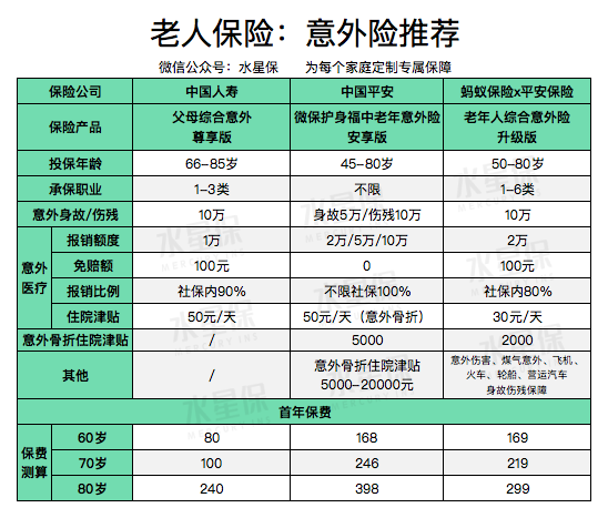 如果追求性价比:中国人寿的父母综合意外险价格最低,70岁只要100元就可享受10万元的保障