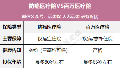防癌医疗险在购买条件上,较百万医疗险宽松。如果不能购买百万医疗,可以退而求其次,选择防癌医疗险,用来保障高发癌症带来的医疗费用。