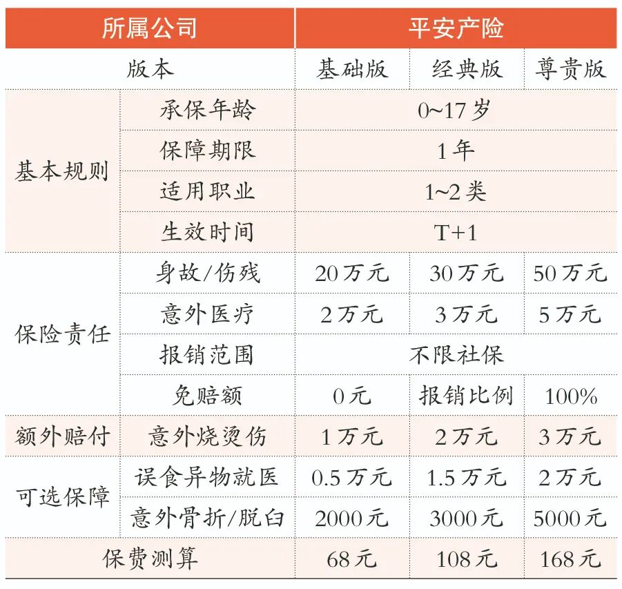 对少儿而言,该产品的意外医疗保障条件优秀,0免赔额,不限社保范围100%报销,最高保额可达5万元。此外,还配备了少儿常见的意外烫伤医疗保险,享受1万~3万元的额外保额。