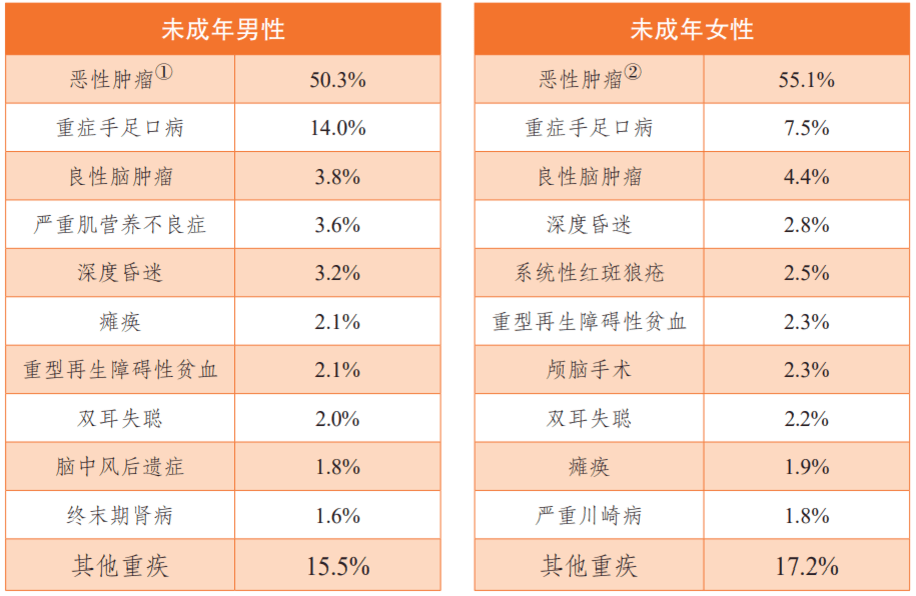 据官方统计的数据显示,在所有的未成年人重疾中,恶性肿瘤是最高发的一种严重疾病,发病率占到了50%以上。