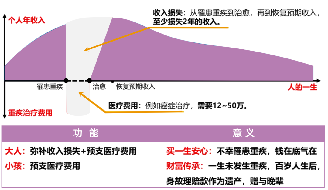 一旦不幸发生,除了需要持续投入高额的治疗费用,还有父母需要照顾小孩而不得不辞去工作使得家庭收入骤减。