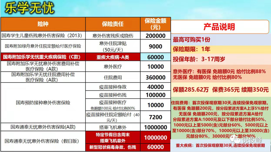 同样意外险也可以用上面第二条的学生险来解决,保费低保障高!