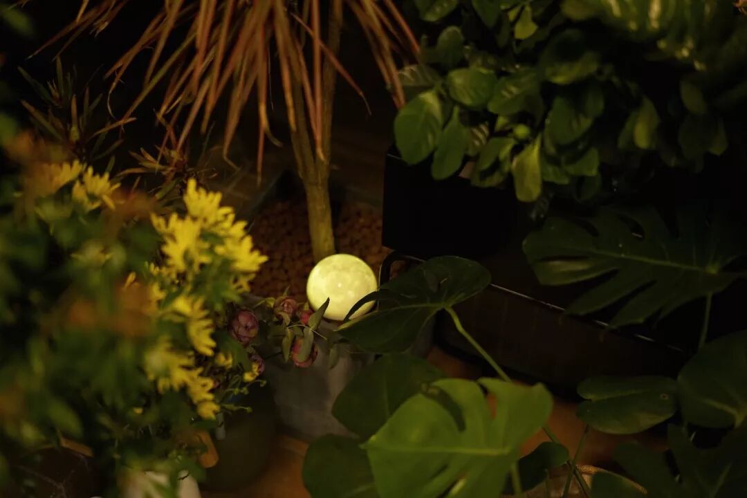 自从热衷家居生活以来,朋友们也时不时会送一些家居小摆设给我,最近收到满满送的小月球灯,放在植物角搞了张创作。这是艺术家玉龙做的艺术装置周边,充电之后感应开关,轻磕一下就能亮。