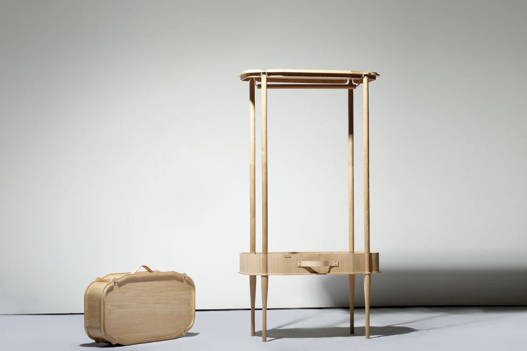 吱音是国内设计师家具品牌,家具都融入了一些中式元素,但又很灵巧活泼,不会因为追求中西结合而变得死板笨重。我非常喜欢下图这个行走的衣柜,合起来就是一个手提行李箱的大小,展开就是单人衣架,很有浪荡走天涯的潇洒劲。(虽然完全不适合我。)