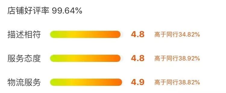 全红虽然有刷单嫌疑,但可以继续往下看,如果描述 & 服务是绿色,那么你们就要慎重考虑了。三项都飘绿的话,说明低于行业水平,这家店你们不要抱有太多幻想,拼人品的时候到了。