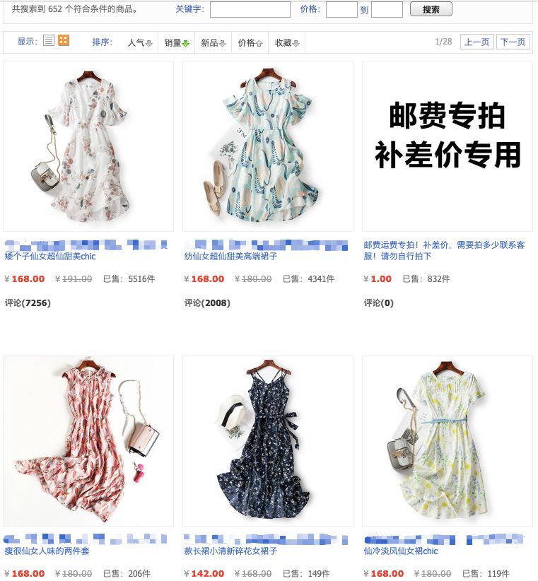 然后进店看单个宝贝的情况。从销量看起。其实同一家店多数衣服的销量差异不会太大,假如这家是信誉是几钻没有上皇冠,全店销量只有前几款销量成百上千,其余几乎没有,那么这家店刷单嫌疑在 90% 以上。