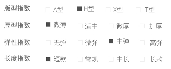从左到右分别为 A 型、T 型、H 型、X 型。除去完美的 X 沙漏型身材,其他身型有些店家会在尺码信息加入推荐体型,相对来说下图中的 H 型对腰围要求更高,你们买之前务必要把测出的腰围和尺码表进行比对。