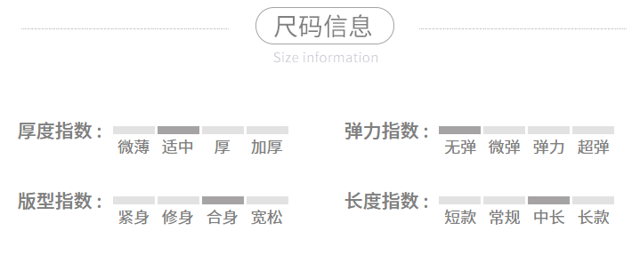 尺码图分为两部分,一部分是模特的尺码及推荐尺码,一部分是衣服的尺码。