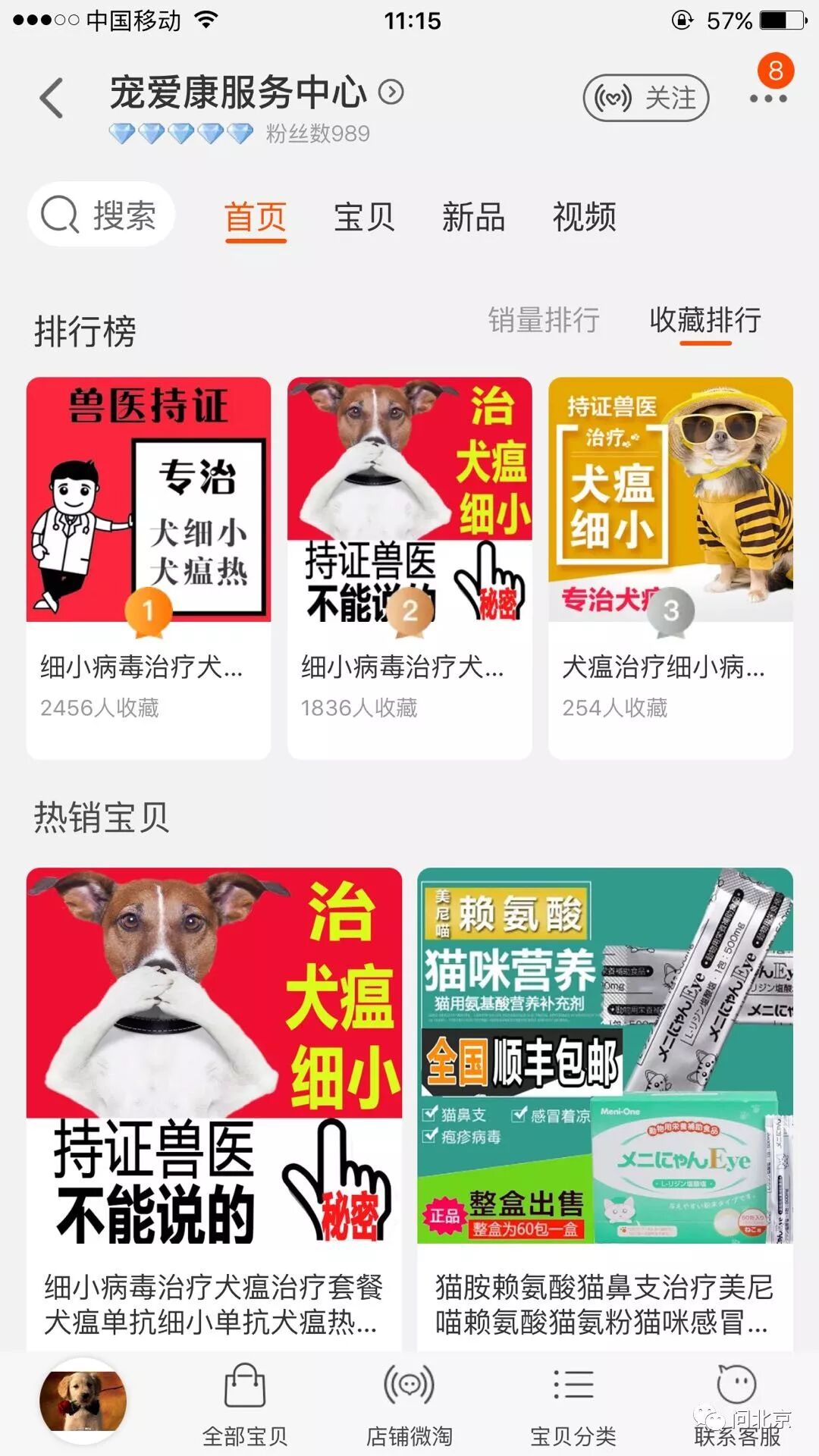 宠爱康服务中心的店铺页面