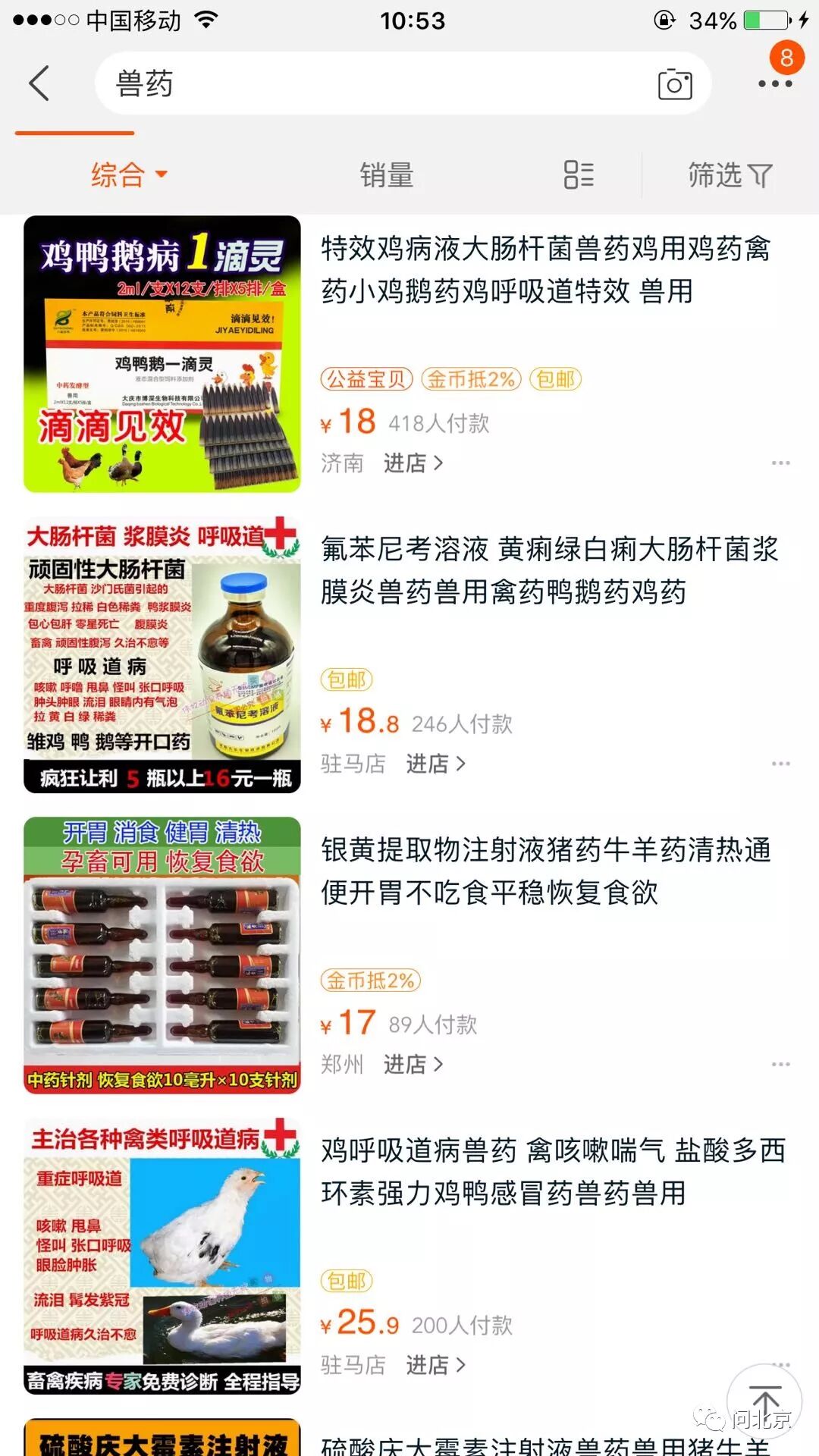 淘宝上大量店家在卖兽药