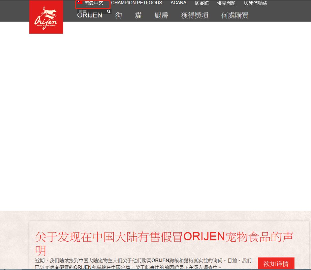 进入渴望猫粮Orijen官网网址:https://www.orijen.ca