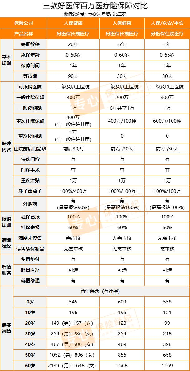 一共出现三款好医保,分别是: