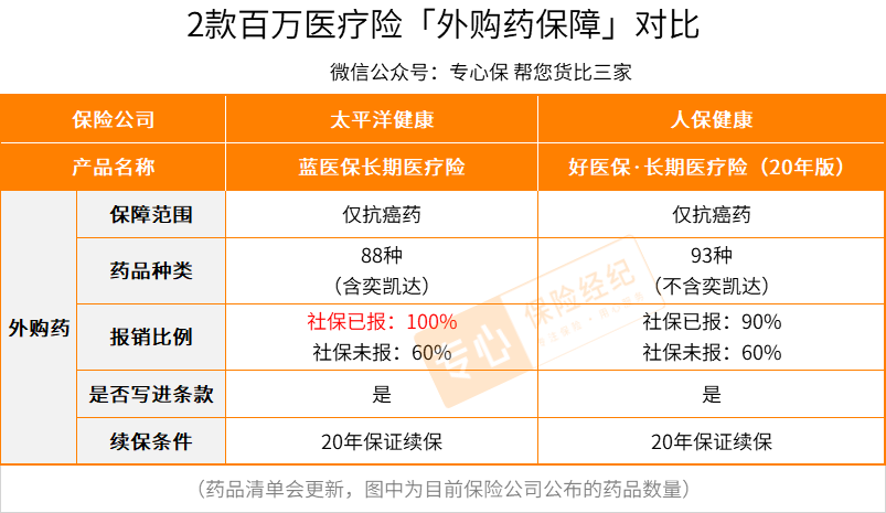 下面给大家对比一下两款产品外购药保障的区别:
