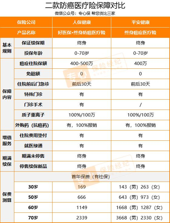 好医保终身防癌医疗险在支付宝平台只有一款,这里我加入大保司平安终身防癌医疗险来对比。
