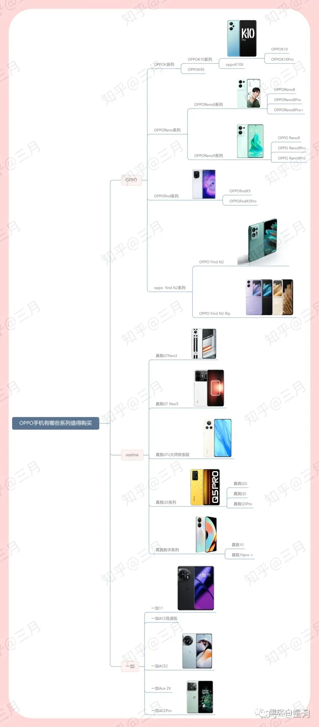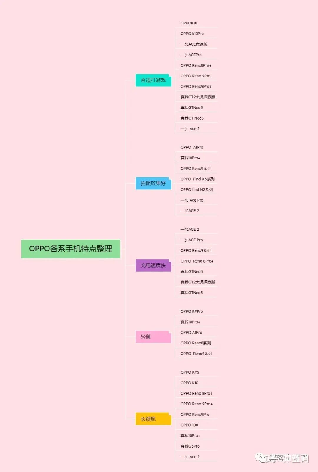 上面这张图整理的是2023年热销的OPPO(欧加)系的手机,涵盖了OPPO、relame、一加三大牌子的机型。