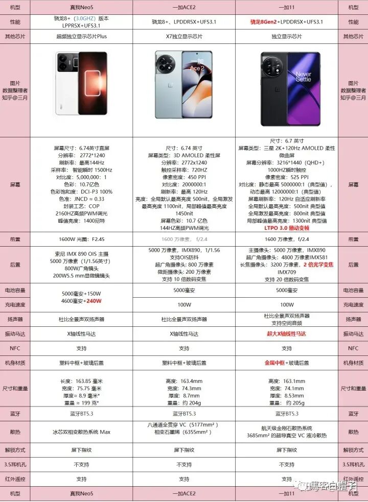 今年真我Neo系列当真是豪情,直接把16G+1T版本干到了4000元以下,这属于目前整个手机界首款,在性价比比方面,真我GTNeo5直接拉满了。以至于,我们现在可以看到,真我GTNeo5很多版本出现没货的情况。这台手机性能采用的是骁龙8+,配合独立显示芯片,以及直屏设计,非常合适游戏玩家,而且屏幕分辨率给到了1.5K,也做了2160HZ高频PWM调光,所以护眼方面真我还是比较看重的。需要注意的是,真我GTNeo5电池和充电方面有两个版本,一个是150W+5000毫安,一个是240W+4600毫安配置,个人建议,如果不追求极致快充,选150W版本会更实用些,而且性价比也更高。总之,真我GTNeo5各方面配置比较均衡,很合适日常打游戏的用户,如果对直屏还情有独钟,那么直接冲就完事了。