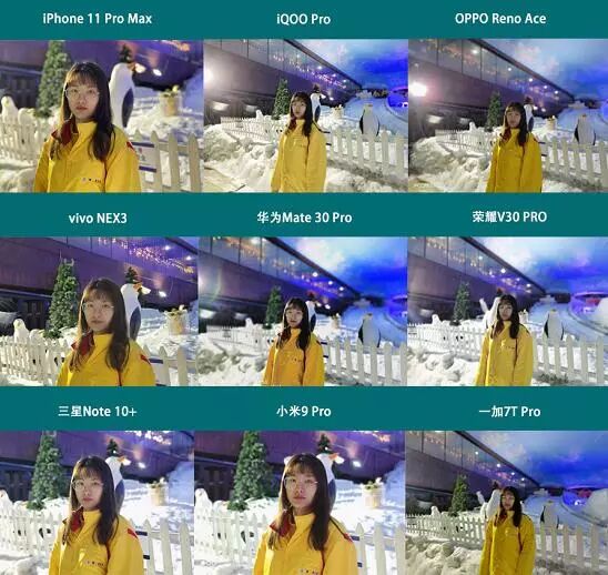 由于拍摄室内光线较暗的灯光,可以看到,华为Mate30 Pro对于光晕的把控更要精准;OPPO Reno Ace以及三星Galaxy Note 10+成像良好,背景虚化自然,人像突出;另外几款机型人像效果较为中规中矩,依旧可以接受。