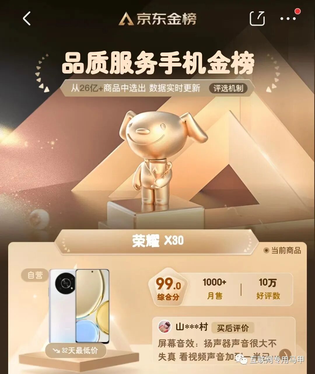 为什么首要推荐荣耀X30?因为荣耀X30发布时间是2021年12月份,至今已一年有余,依旧能入选京东品质服务手机金榜TOP20,月销量1000+,好评数10w+;什么?仅看销量不足以证明荣耀X30有性价比?咱们先看价格,当时发布价8+128是1699元,现在仅售1399元,彻底沦为千元机;