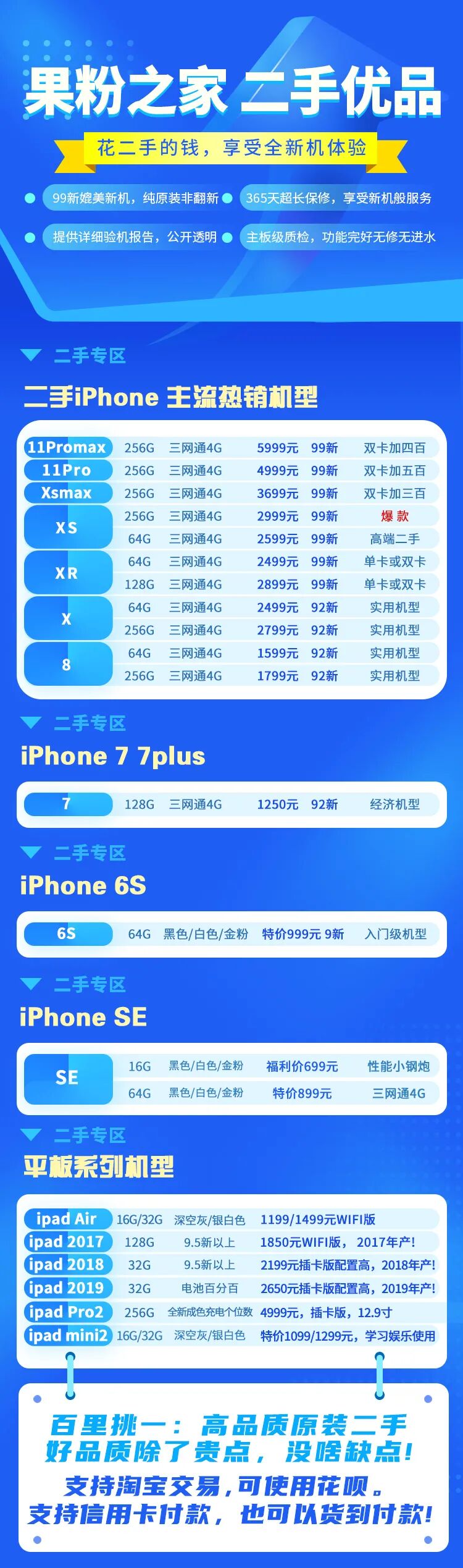 果粉之家自营的二手iPhone都是成色好的原装二手,主板级验机确保原装无修无进水,而且还提供365天保修【关于果粉之家二手机的详细介绍请看文末】以下是咱们公众号:果粉之家年底最近的二手机报价表!
