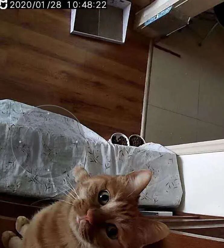 安装完成连接Wi-Fi后,用米家App就能随时查看,也能把监控链接分享给家人朋友。如果插上SD卡或者购买小米的云存储,就可以把录像保存下来,非常方便。春节期间,我还用它抓拍到了猫咪的可爱瞬间:
