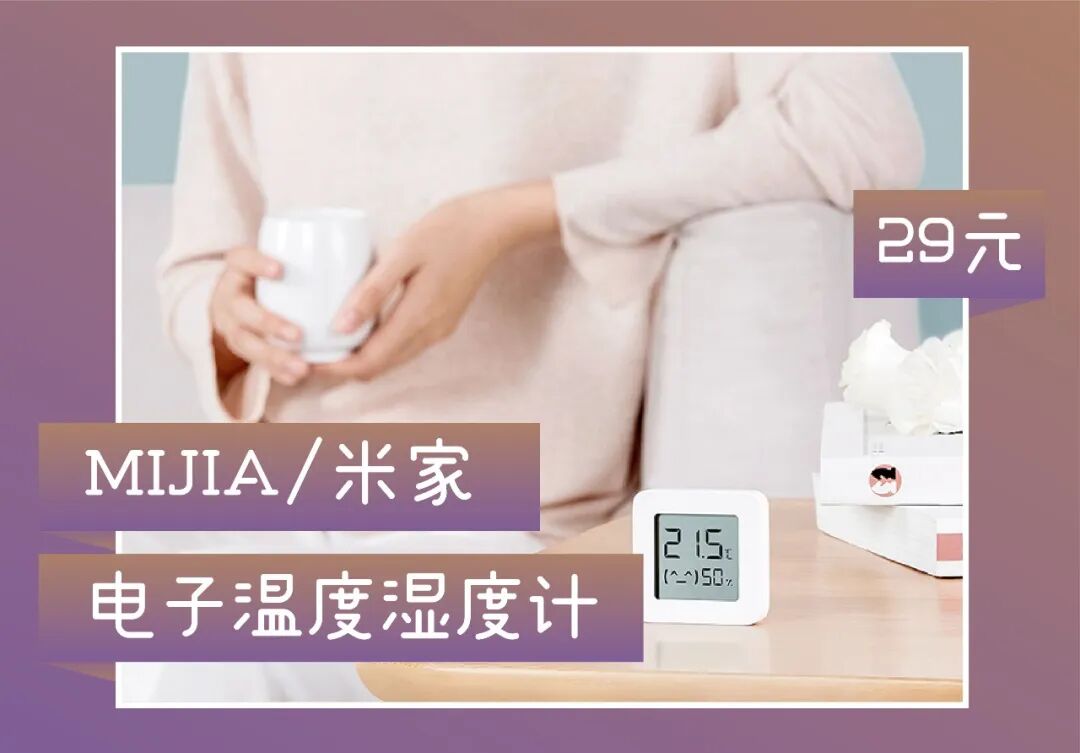 小米的这款电子温度湿度计简单好看,放在桌上或是贴在墙上都可以,用的是纽扣电池,一颗电池能顶一年。价格不用说是真便宜,29元一个,家里房子大的话,一套买 3 个才69块。