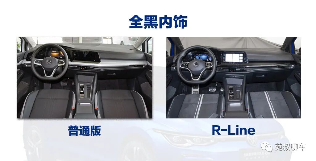 内饰上,它只提供一种全黑的配色方案,差别在于普通版和R-Line的座椅样式有所区别,R-Line的座椅会使用更多的白色点缀。
