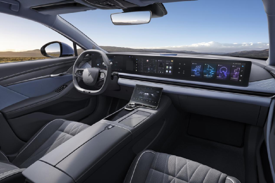 智己L7的颜值还是比较高的,这款车整体设计大气,炫酷的大灯,流畅的线条,处处给人一种个性张扬的感觉。内饰方面,智己L7的内部看上去比较柔和,方向盘的造型独特,并以真皮材质覆盖,触感和视觉效果都不错。值得一提的是,车内的中控屏是一大亮点。26.3英寸的触控OLED中控屏新潮时尚,把智能科技感拿捏的很到位。另外,车内的座椅采用的是皮质覆盖,具有不错的包裹性,驾乘体验也不错。