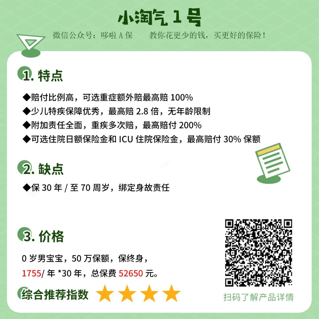 ②适合人群:追求高赔付、极致性价比的宝爸宝妈。