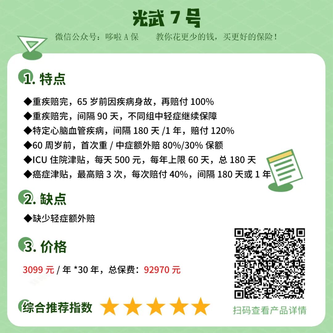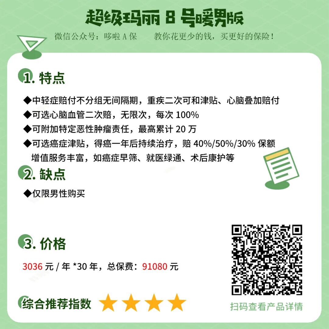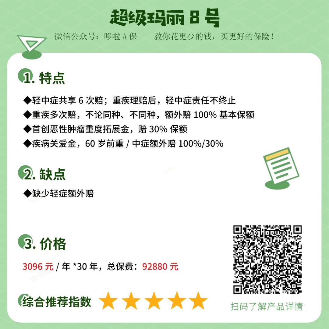 ②适合人群:看重保障全面和极致性价比的人,预算有限还可以只保重中轻症。可以说是性价比之王。