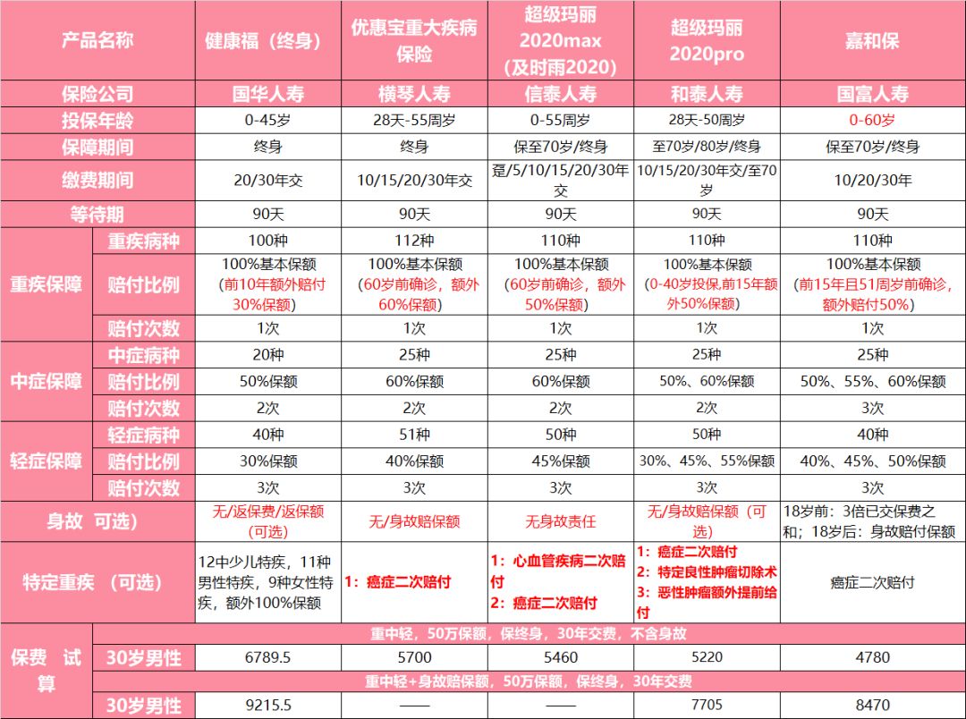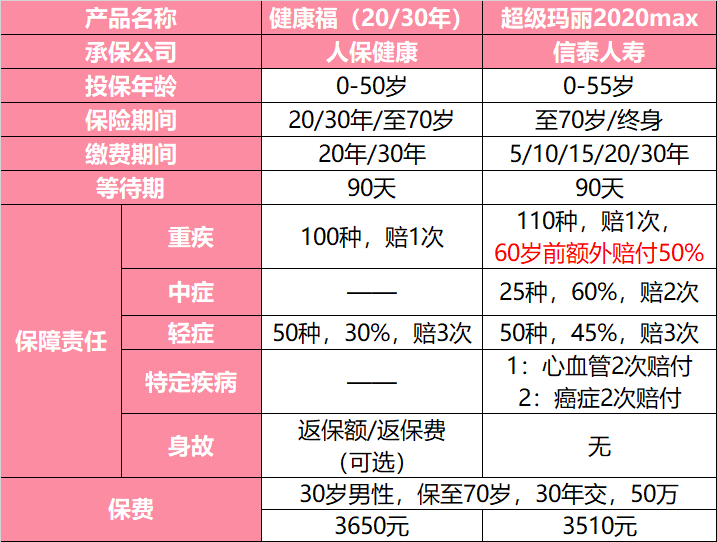 2:健康福重疾险(保20/30年)