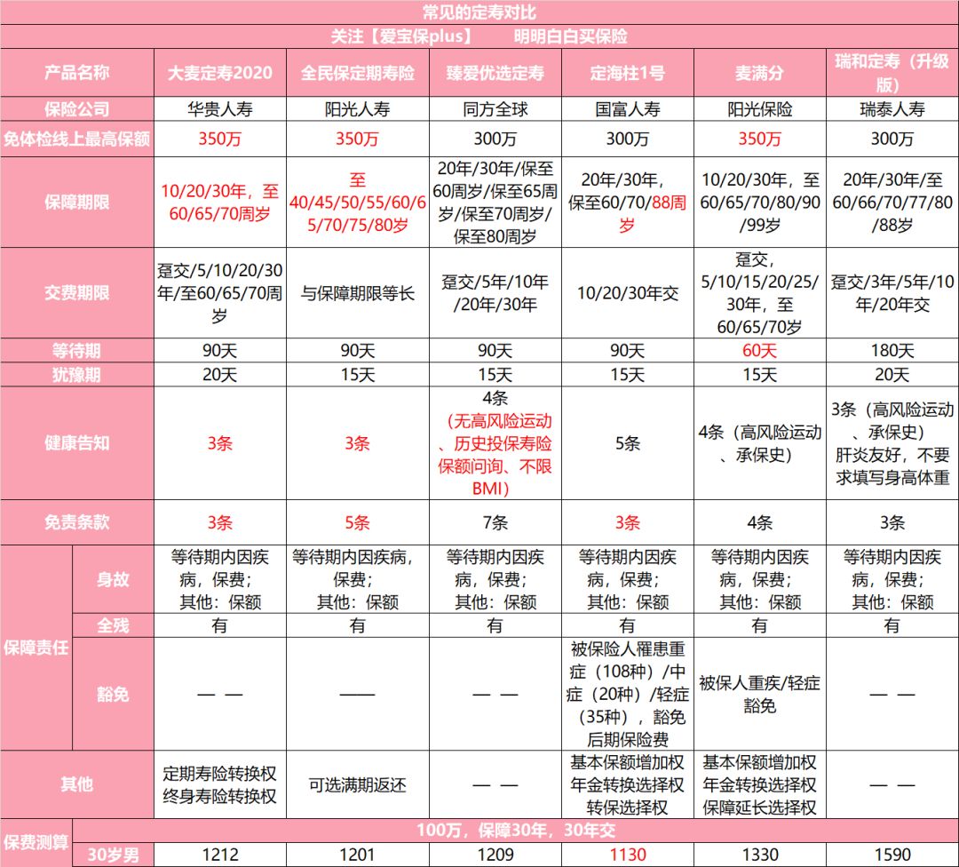 而全民保定期寿险,健康告知只有3条,价格非常便宜,除了免责略多一点点,别的都是很不错的。而且还可以增加满期返还保费的责任,如果有人不喜欢定寿的消费型,也是可以选择的。