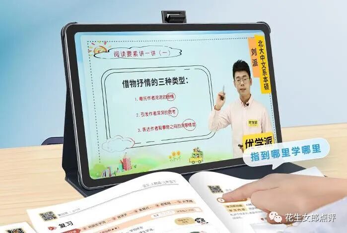 而优学派可能就没有步步高那么家喻户晓,但其实这个牌子也有十年历史了,它的前身是诺亚舟,在学习机这方面算是有很多年的技术积淀,他家的优势在于,学习机的在线内容都是清北名师和新东方在线合作的,资源非常硬。