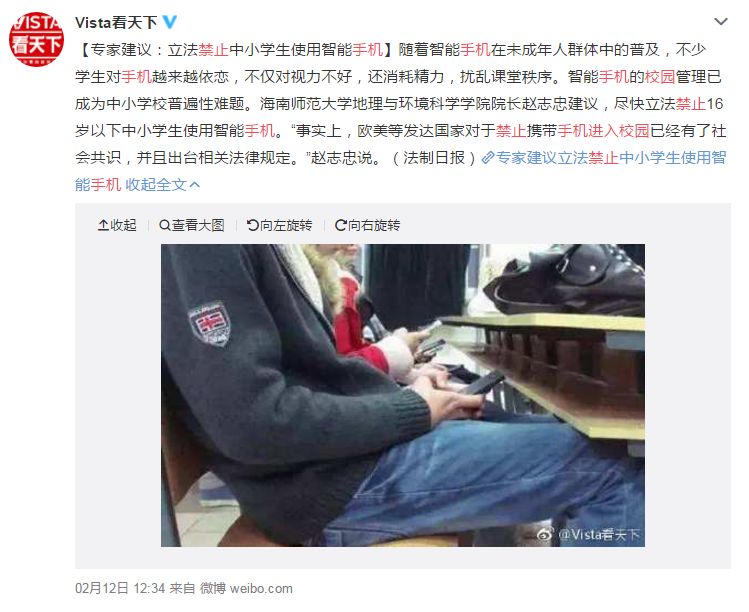 可见青少年还是缺乏自制力,需要老师或者家长来督促,国内已有不少专家学者建议禁止学生带手机进入校园。