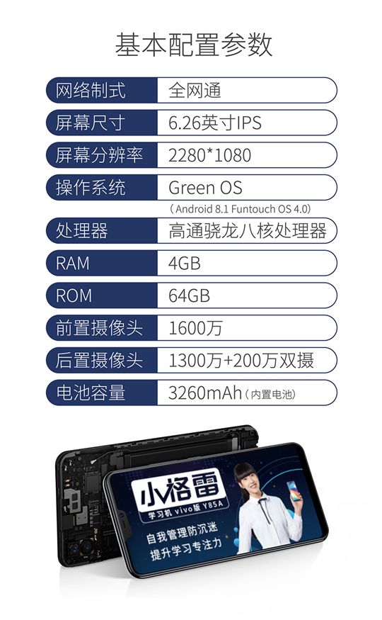 小格雷学生手机vivo Y85A专为7-17岁学生群体打造的学生手机,为家长远程管理监督提供便利。
