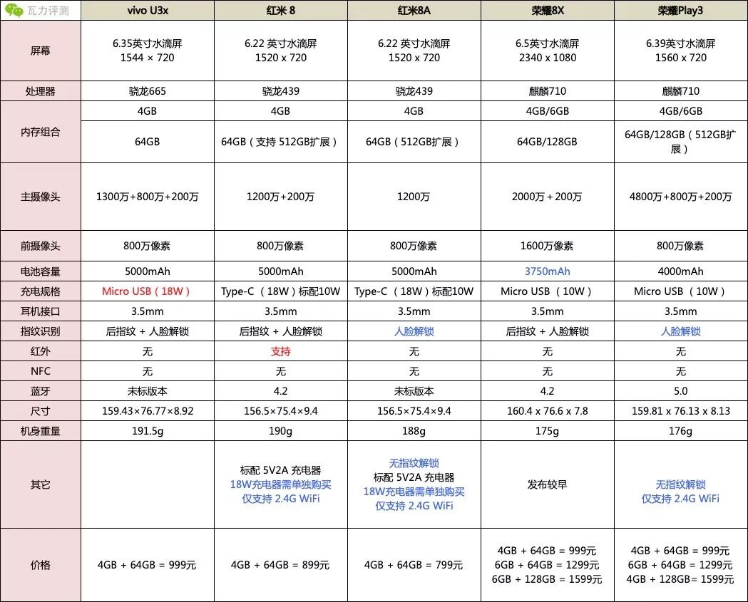 整体对比下来,红米8和荣耀Play是最不值得优先考虑的机型,而红米8A则更适合预算非常少,就想买个便宜手机凑合用的人。