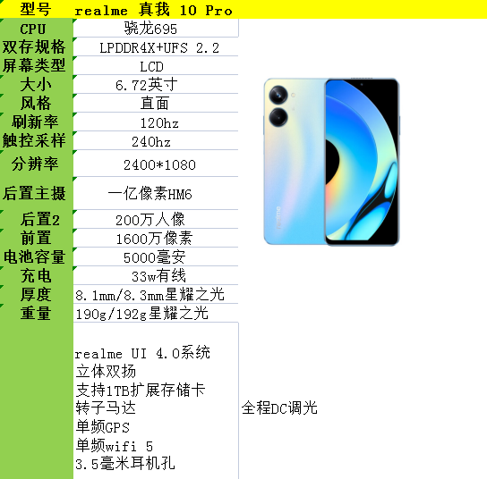 realme 10 Pro,搭载骁龙695价格最低(8+256版本)