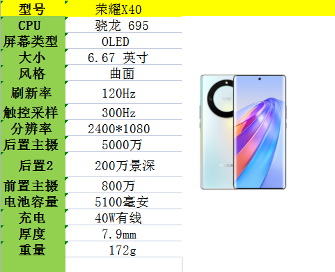 而充电由上一代荣耀X30的66瓦给降级成40瓦