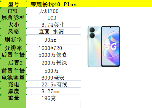 从从参数图上不难看出,荣耀Play7T本身就是荣耀畅玩40plus的套娃换芯版,处理器由天玑700改为天玑6020,属于前者的小幅升级版