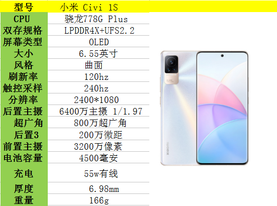 而小米civi 1s把轻,薄,窄做到了极致,比其他几个系列都更具优势