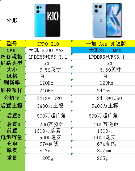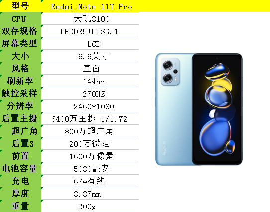 红米note11tpro,一加ACE竞速版,OPPOK10(拥有2000以下性能最强的天玑8100处理器)
