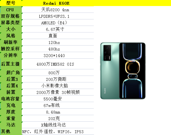 首选红米K60E,配置非常均衡
