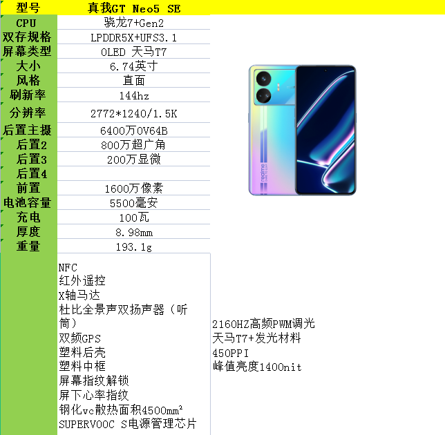 骁龙7+Gen2,跑分98万,红米note12turbo,真我GT Neo5 SE