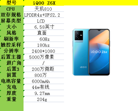 相较于iQOO z6提升如下