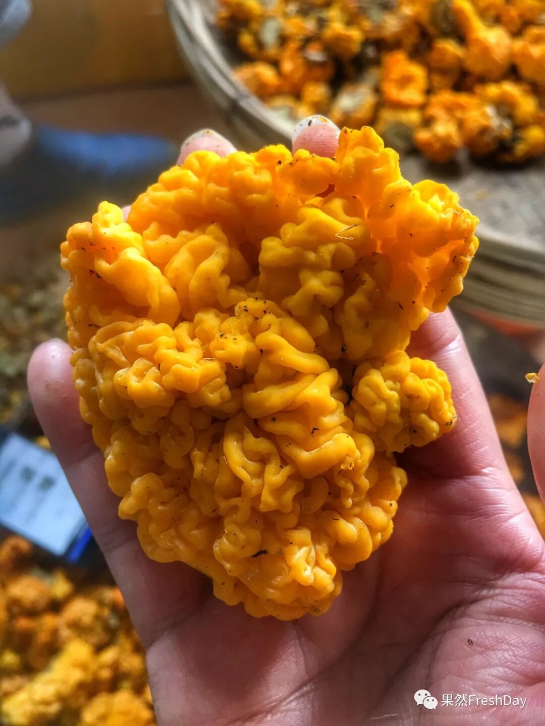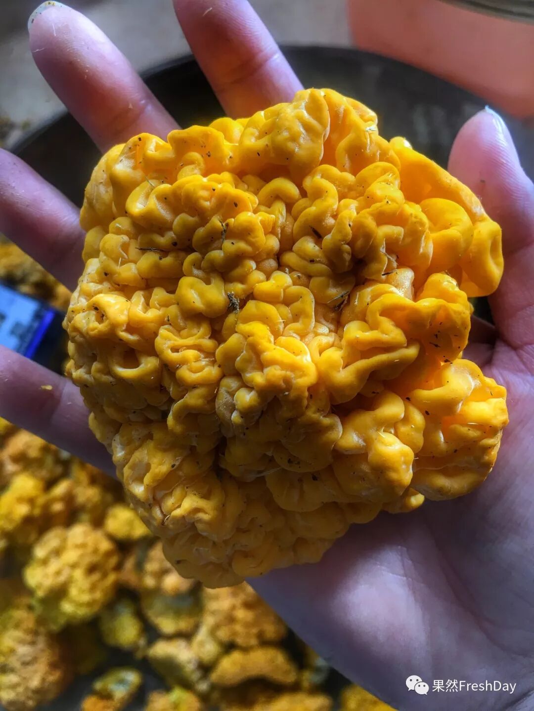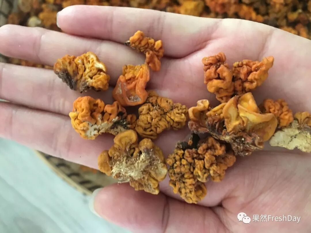 优良的椴木金耳成熟时有新鲜的柠檬黄色、橙色、金黄色、甚至橘红色。