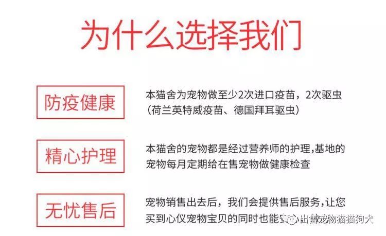 店所售猫咪均为自家繁殖,保证猫咪100%健康 100%成活率 血统纯正。对繁殖的猫咪隔离式饲养,杜绝交叉感染,减少患病机会。出售的猫咪均已注射过两针疫苗,驱虫,请贵客放心购买,我们一定做到让您买的放心,养得开心!!