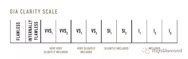 GIA 净度分级系统有 11 个净度等级,依次为FL、IF、VVS1、VVS2、VS1、VS2、SI1、SI2、P1、P2、P3。