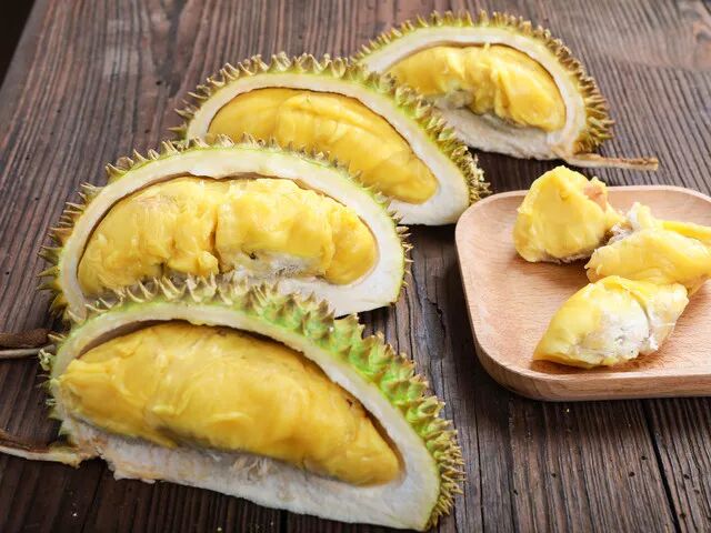 对于没有发黄的榴莲瓣,我们可以用手轻轻按一下,如果感觉软软的就刚刚好,很软的则熟过头了,会发苦。如果感觉硬硬的就是没熟的榴莲。