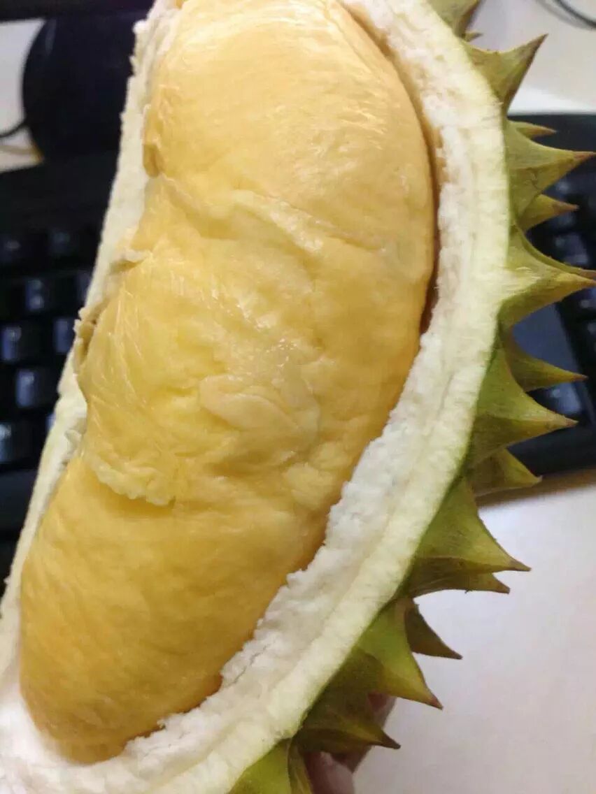 现在超市里也有剥好的榴莲瓣,用保鲜膜包起来出售的。挑选这种榴莲可以先看看颜色,颜色发黄的就是已经烂掉的,直接飘过。但泰国榴莲的果肉除外,因为泰国榴莲的果肉都是黄色果肉。